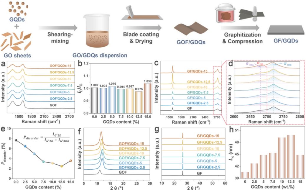 随着电子设备不断向小型化、高集成度方向发展,芯片功率密度持续攀升,局部热积累已成为制约器件可靠性和使用寿命的关键瓶颈。以智能手机、AI芯片和高功率LED为代表的现代电子系统,亟需兼具超高导热性能和柔性的热管理材料。石墨烯因其高达约5000 W·m-1·K-1的理论热导率,被视为下一代电子散热材料的理想候选。然而,由氧化石墨烯(GO)组装制备石墨烯膜的过程中,高温热还原会释放大量CO和CO2等气态副产物,不可避免地引入碳原子空位等结构缺陷,导致声子散射增强,严重制约了薄膜导热性能的进一步提升。如何进一步减少热还原后石墨烯膜的缺陷,实现高取向、大晶粒的结构,成为领域内亟待解决的科学难题。